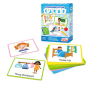 The Communication Cards set includes 80 visual cards, each representing a common daily activity — from brushing teeth to story time — designed to simplify communication and help children see their day in a clear, predictable way.